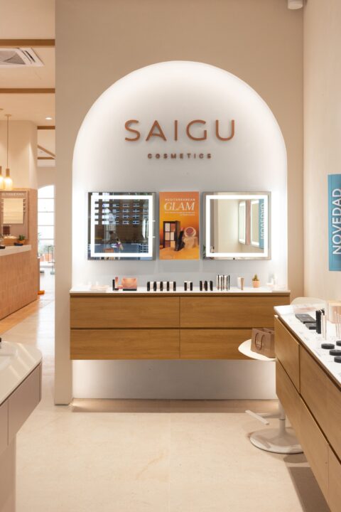 The goal: to design a store that combines aesthetics, functionality, and sustainability, reflecting Saigu's core values of natural beauty and well-being. The project needed to establish an emotional connection between the brand and the customer through a sensory experience that remained coherent with its digital universe.